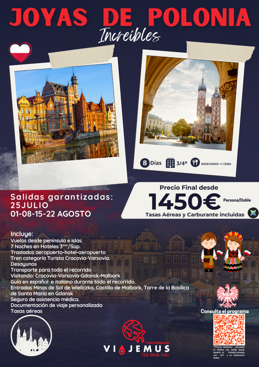 Joyas increíbles de Polonia, 8 días visitando Cracovia, Varsovia,Gdansk,Malbork.Hoteles 3*Sup-4*.